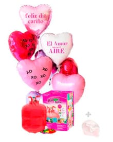 12 Globos Corazón de Poliamida Personalizado + Helio Mini · Pack Corazón Metal Mini