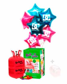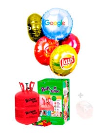 - 1 Pack de 22 globos de helio Redondo Personalizado + Helio Maxi y cinta de atado