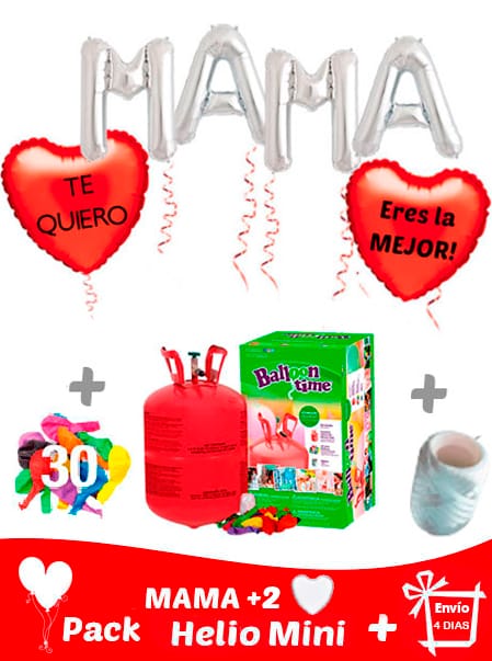 Globos Día de la Madre 4 letras MAMA + 2 Globos Corazon Poliamida 86 cm Personalizados + Helio Maxi